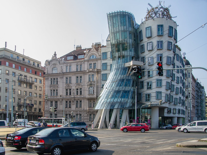 This relationship between new and old lies at the heart of a more subtle but still lovely Gehry design: so-called Fred and Ginger. They dance not so much with each other but with all of Prague and indeed the whole of Europe and all the horror, joy, progress, and regret that passed through it between the 18th and 20th centuries. That spirit extends